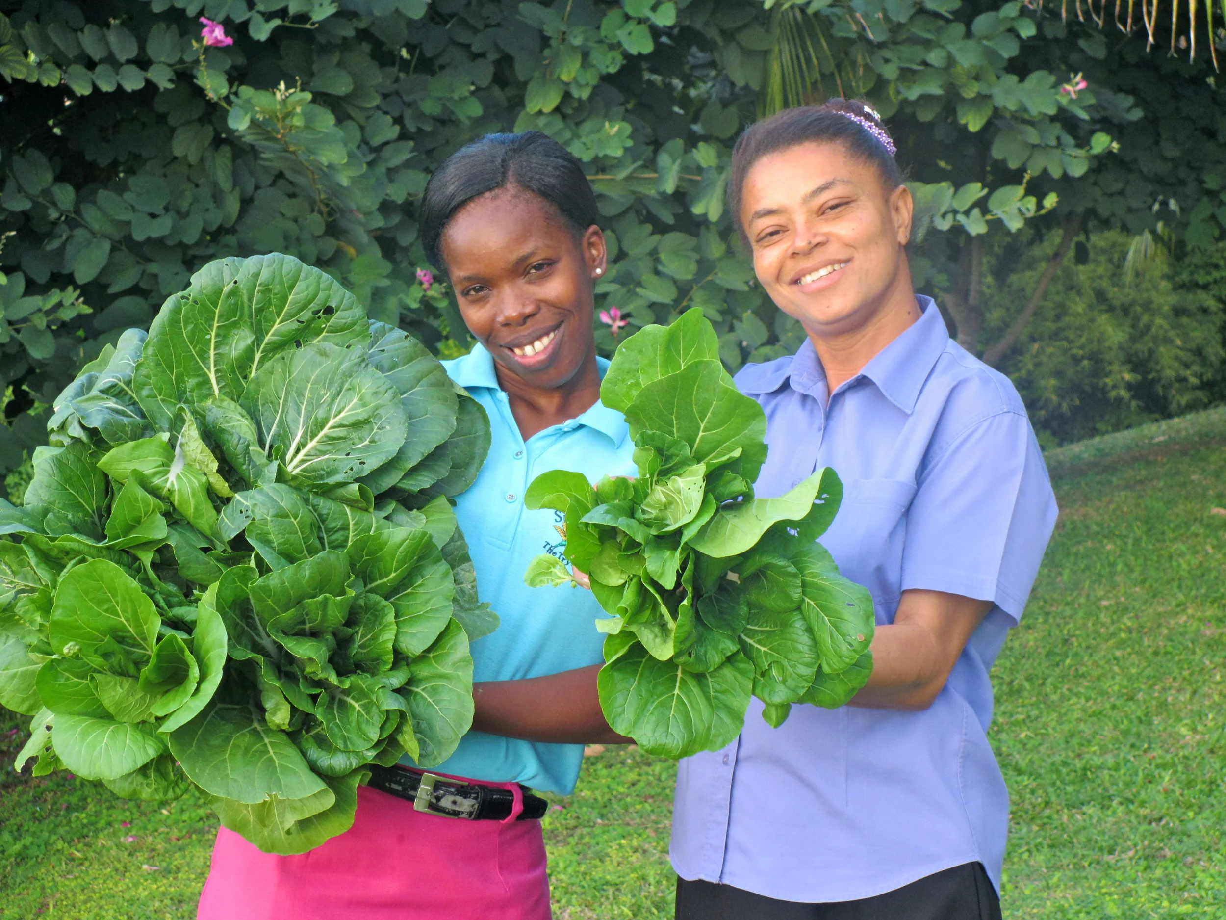Our gardeners, Eric and Elijah, and delicious homegrown papayas!